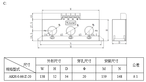 AKH-0.66 Z型系列三相導軌式電流互感器產品外形美觀,接線方便。外殼材料可選用曾強尼龍、PPT、透明聚碳酸酯、阻燃PC/ABS合金,作為交流電流信號采集元件,一般與AMC16、PZ-3O0配套使用,可減小電流互感器安裝空間和接線的煩瑣,為用戶降低成本。