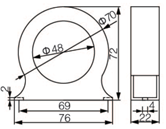 注:一次電流從P1面進,P2面(灌膠面)出;二次引線黃色為S2,紅色為S1,引線長150mm,引線截面積0.22m2