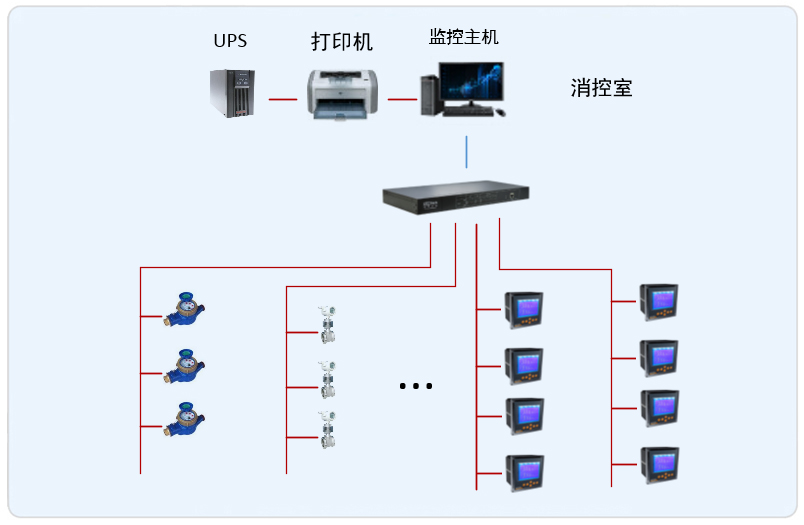 系統(tǒng)采用Acrel-5000型能耗監(jiān)控系統(tǒng),整個系統(tǒng)采用網(wǎng)絡分布式結(jié)構(gòu),監(jiān)控主機位于消防監(jiān)控室中,所有配電回路均配備安科瑞電力儀表PZ系列,以及一些水表。該項目實現(xiàn)了銀川建發(fā)大閱城?凱悅酒店能耗系統(tǒng)的智能管理,所有監(jiān)控設備均通過屏蔽雙絞線至后臺的通訊管理機,從而實現(xiàn)遠程監(jiān)控。