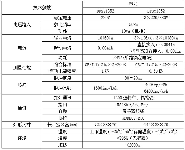 適用于額定頻率50Hz的單相、三相交流有功電能的計量。